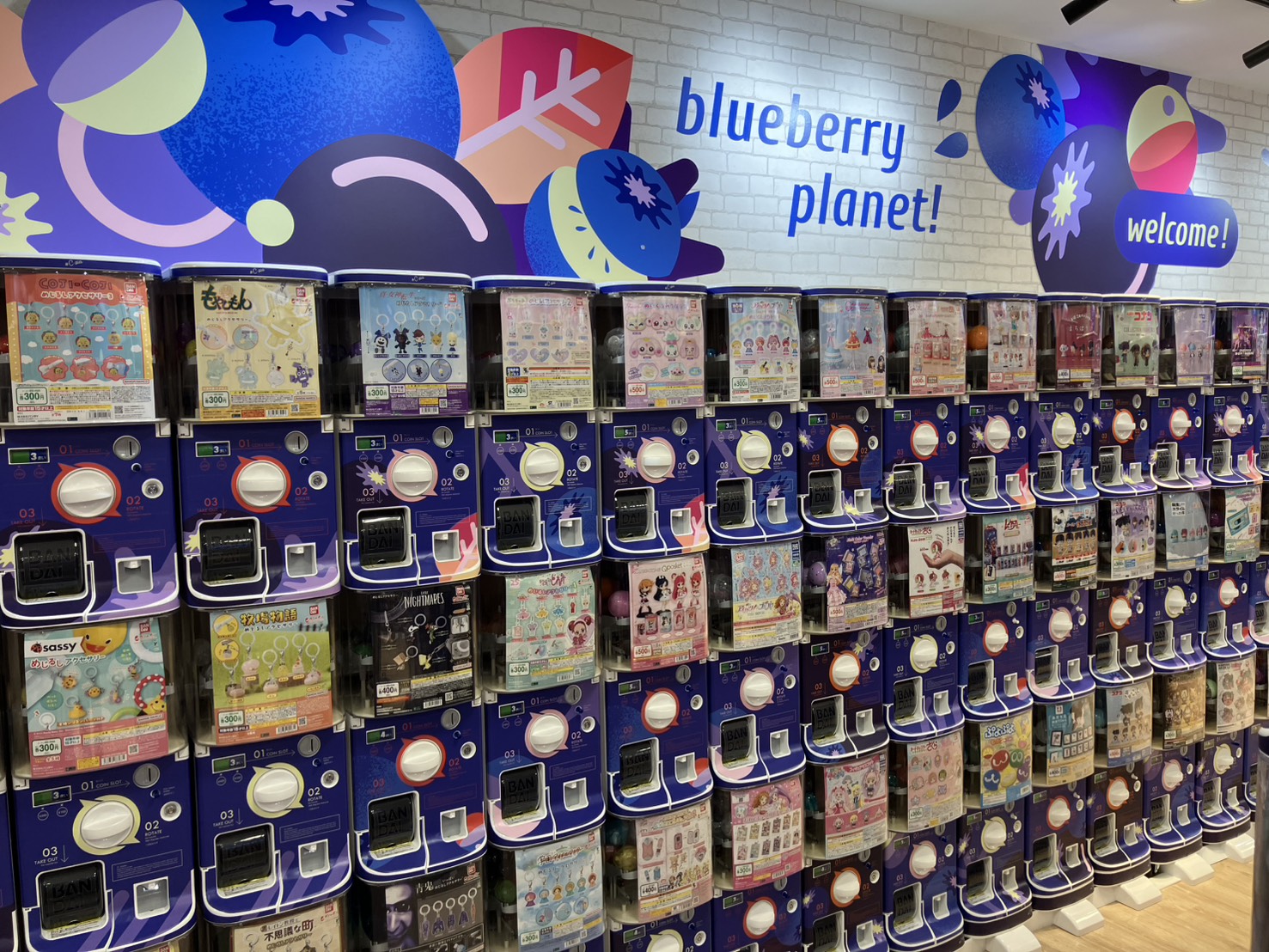 瑞々しいブルーベリーとコロコロ転がるカプセルが可愛い、華やかさを感じられる店舗です。